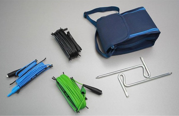 Le kit est composé de trois piquets de terre et de trois câbles (noir, vert et bleu) pour l’IT.EST 600B et l’IT.EST 600A
